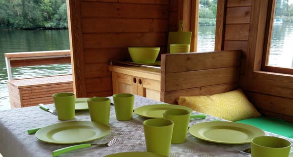 Dieser Floß-Typ entspricht von den Grundmaßen dem des Typs-2, bietet Ihnen im Innenbereich aber deutlich mehr Platz zum Sitzen und zusammen sein. Der Unterschied zwischen Typ 2 und 3 ist folgender: Das Typ 3 ist im Innenraum etwas größer und Sie haben 2 Tische für bis zu 10 Personen. Typ 2 hat nur einen Tisch für etwa 4 Personen.