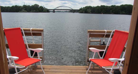 - eine große Terrasse im vorderen Bereich des Floßes - Maße 1,90m x 2,60 m